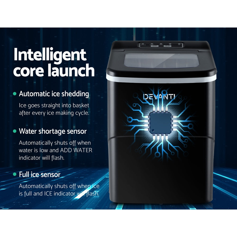 Need ice cubes on demand fast and without the hassle of driving to the nearest servo or supermarket to get some? Well your wish has just come true with the Devanti Ice Cube Maker. Capable of making 9 ice cubes in every 6 minutes depending on the water and ambient temperatures, the portable ice cube maker can also do two different sizes of its crystalline bullet-shaped ice cubes. That works out to about 12kg on demand over a 24-hr period. Just select your size option on the LED control panel and press start. You can easily monitor the water level or when the ice cube container is full and there is an automatic indication when the water level is low. Other great features include a large heat dissipation fan for excellent cooling, convenient water drainage plug and non-slip feet for a stable operation. Not least, the ensemble works ever so quietly and complies with current Australian standards.